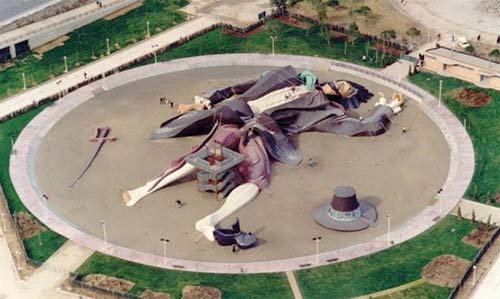 Playground baseado no mito GULLIVER, o boneco tem 70 metros simula estar amarrado por cordas pelo povo de Lilliput, é usado como escorregador, local para sentar e para escalar.